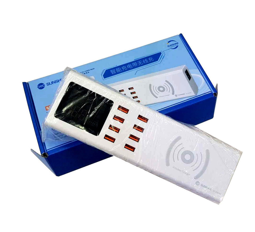 Sunshine SS-309WD 8 Ports USB Charger LED Screen Wireless Charging iPhone Samsung iPad Tablet Huawei MacBook